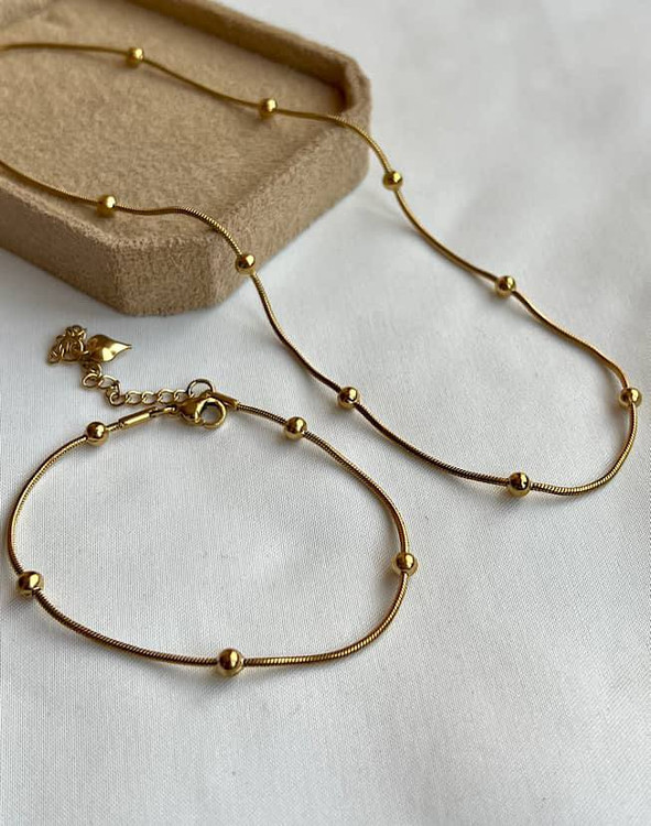 دستبند و پابند ماری توپی استیل رنگ ثابت عمده ۵ عددی