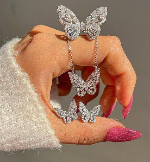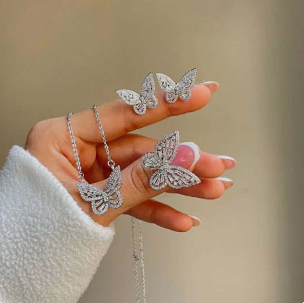 پروانههای نیم ست سه بعدی و تماماً نگین کاری شده