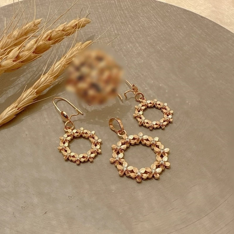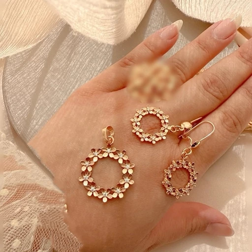 کاملا مشابه با نمونه طلا ا تراش فوق العاده روی گلها و نگین کاری ظریف در وسط گل