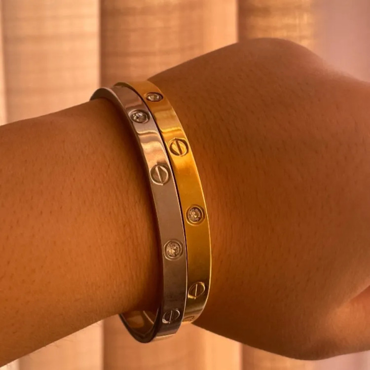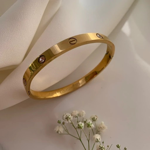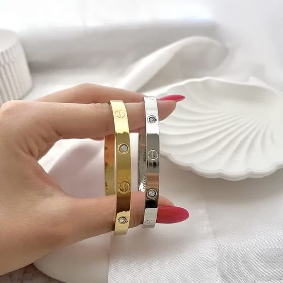 دستبند النگویی کارتیر طرح لاو نگین دار استیل
