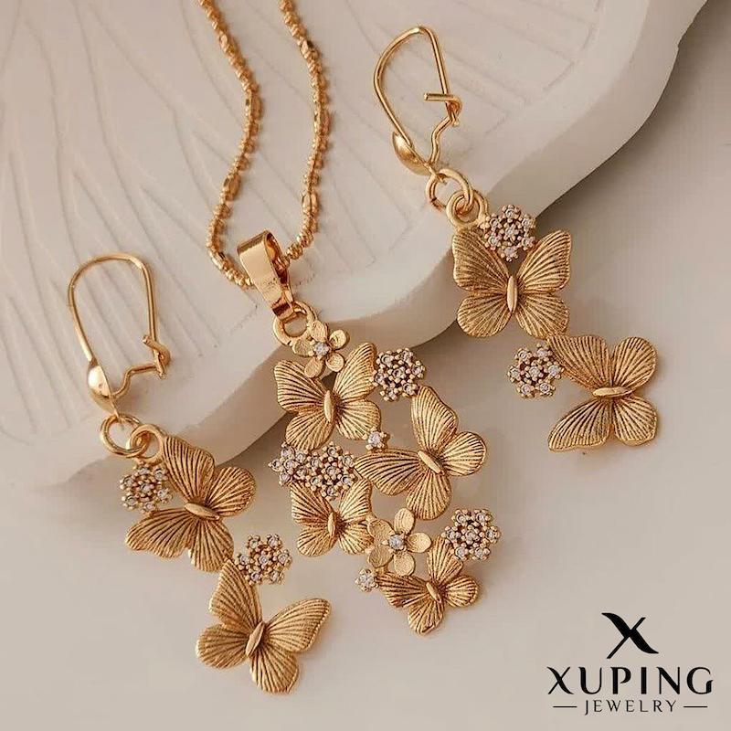نیم ست ژوپینگ پروانه نگین دار طرح طلا