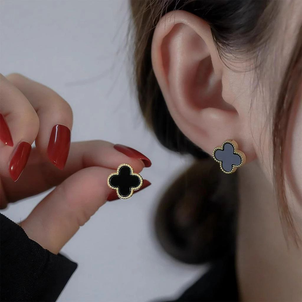 گوشواره ی ونکلیف میخی استیل مشکی و سفید