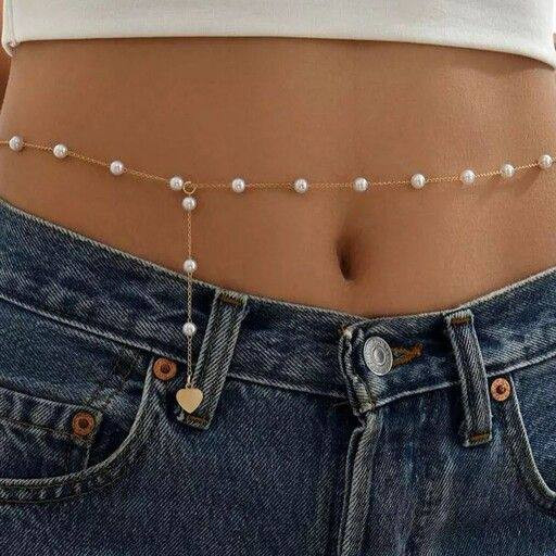 زنجیر کمر مرواریدی با آویز قلب