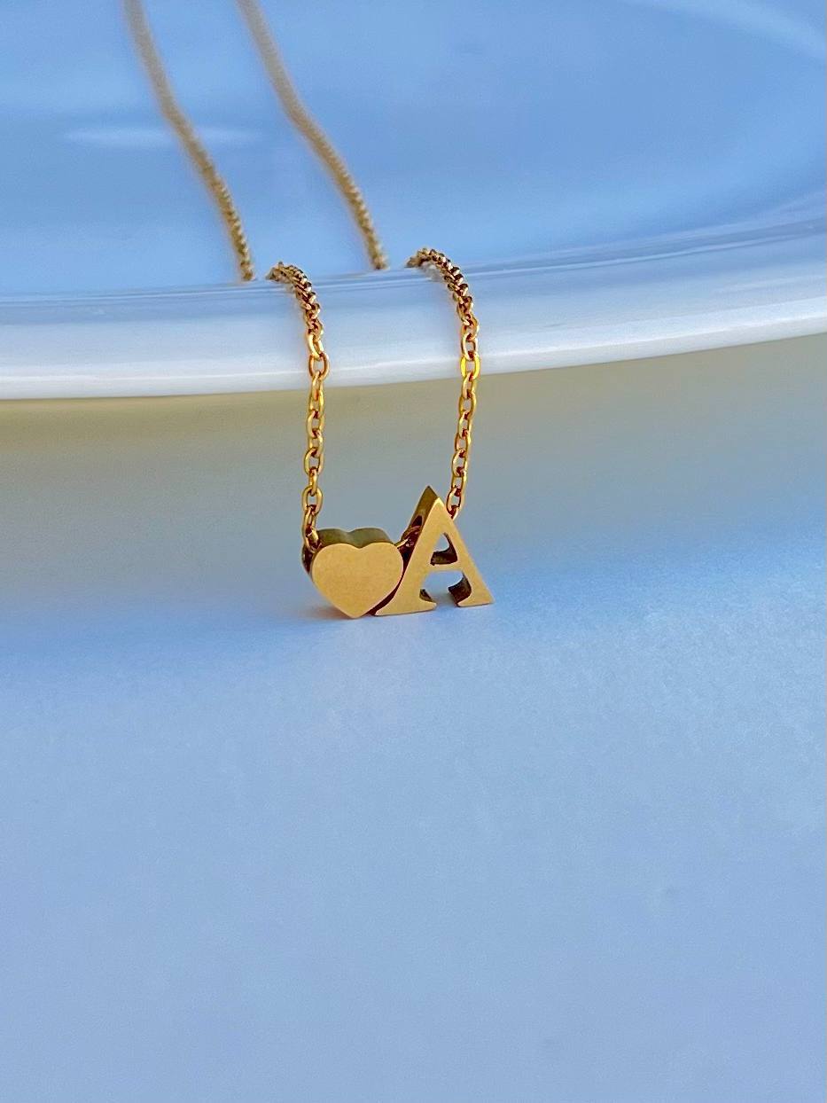 گردبند سه بعدی با ترکیب پلاک های حرف اول اسم شخص مقابل و قلب سه بعدی و به همراه زنجیر دیپلمات