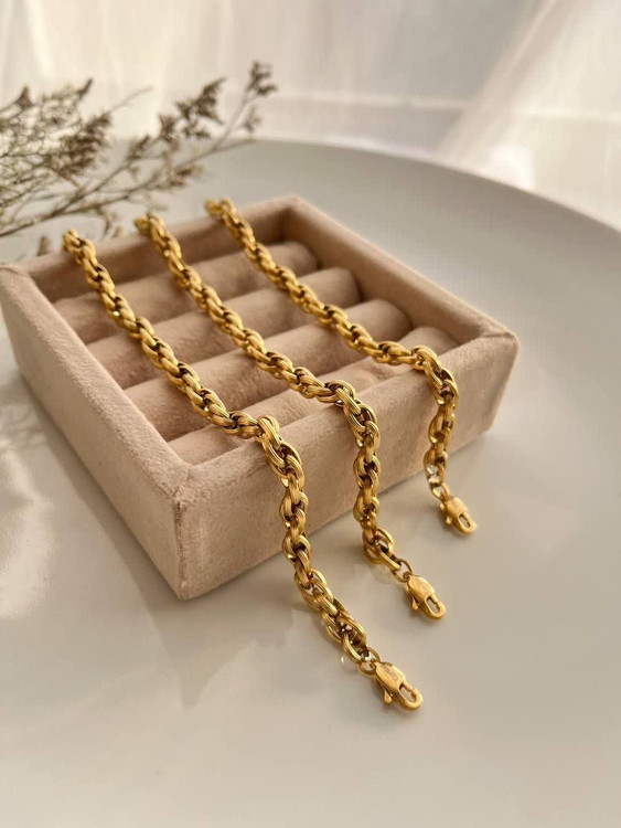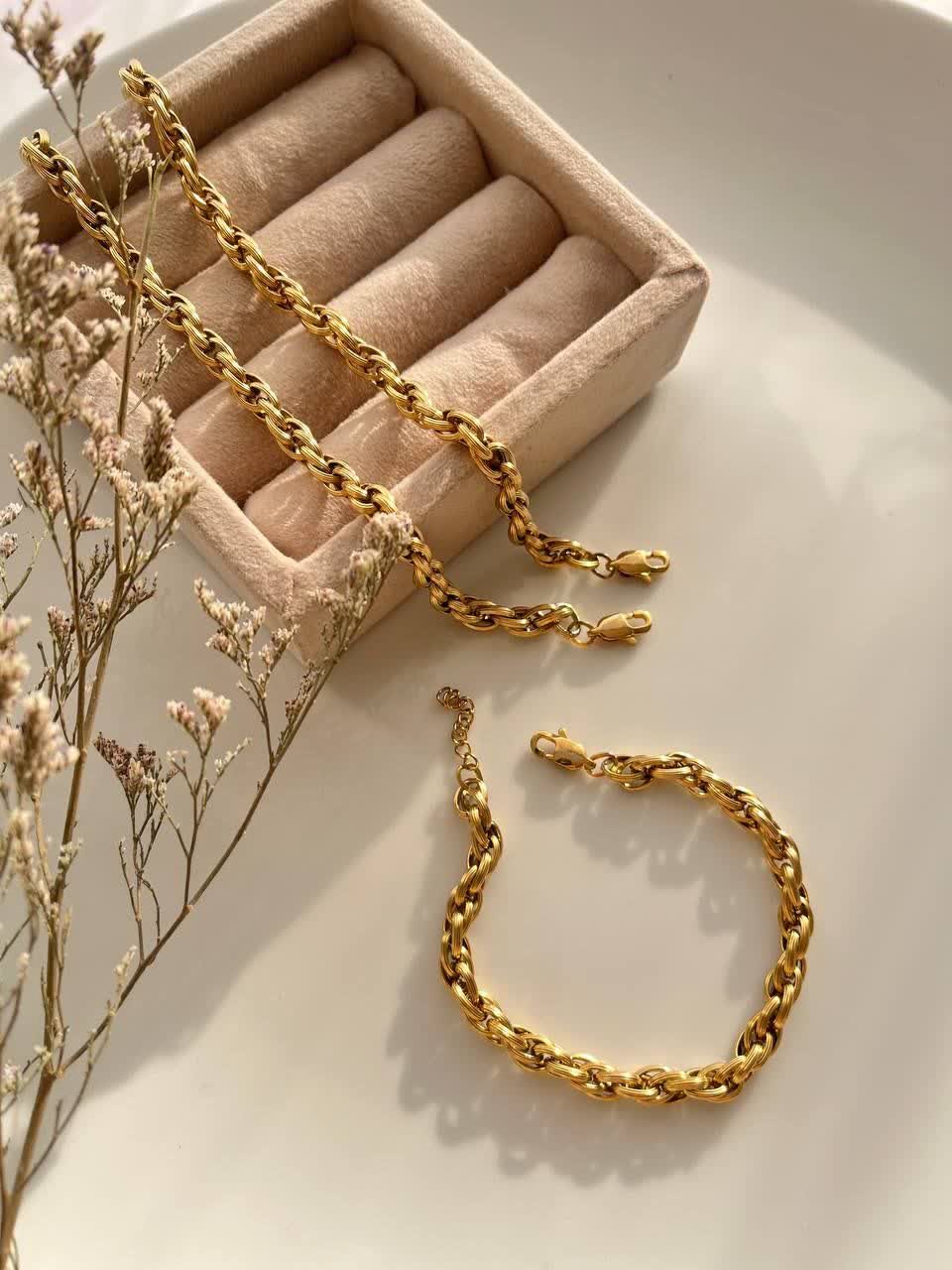 یک ست بی نظیر که کاملا مشابه طلاست استیل و رنگ ثابت کیفیت عالی مناسب استفاده روزمره مهمانی و مجالس تفاوت این کار با محصولات دیگه مدل قفل هست که مشابه طلاست طول گردنبند ۴۴ سانتی بعلاوه ۵ سانت زنجیر تنظیم طول دستبند ۱۷ سانت بعلاوه ۵ سانت زنجیر تنظیم