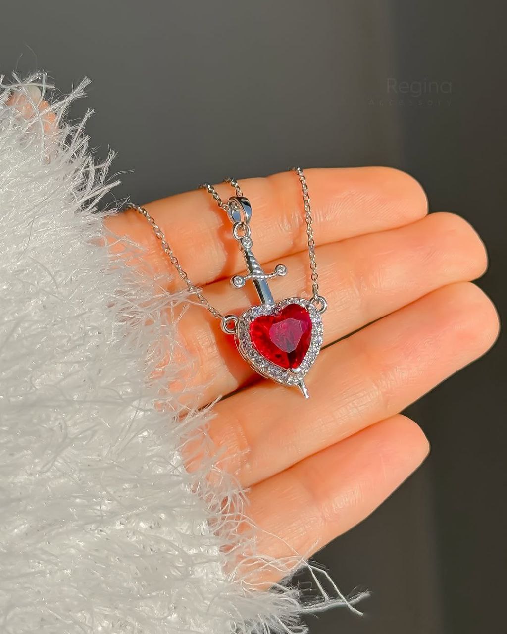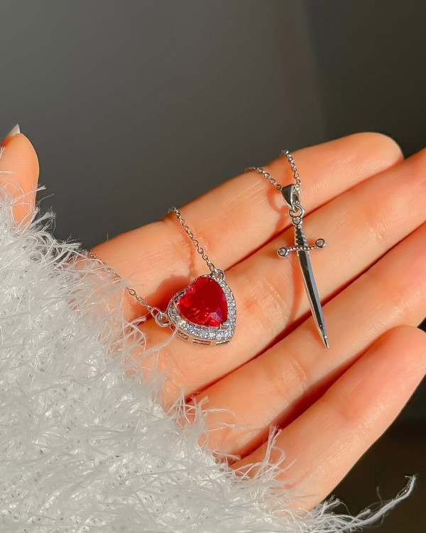 این ست پلاک ا نگین کاری بسیار زیبا در دور پلاک قلب و نگینهای ظریف روی شمشیر ساخته شده طول گردنبند ۴۵ سانت استاندارد هست