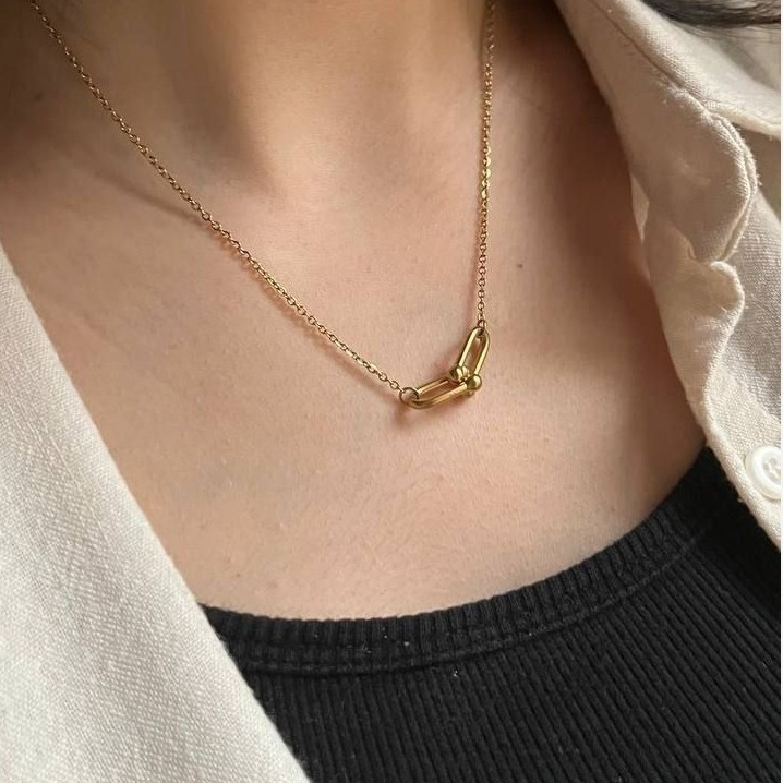 گردنبند با پلاک تیفانی استیل طرح طلا