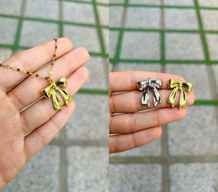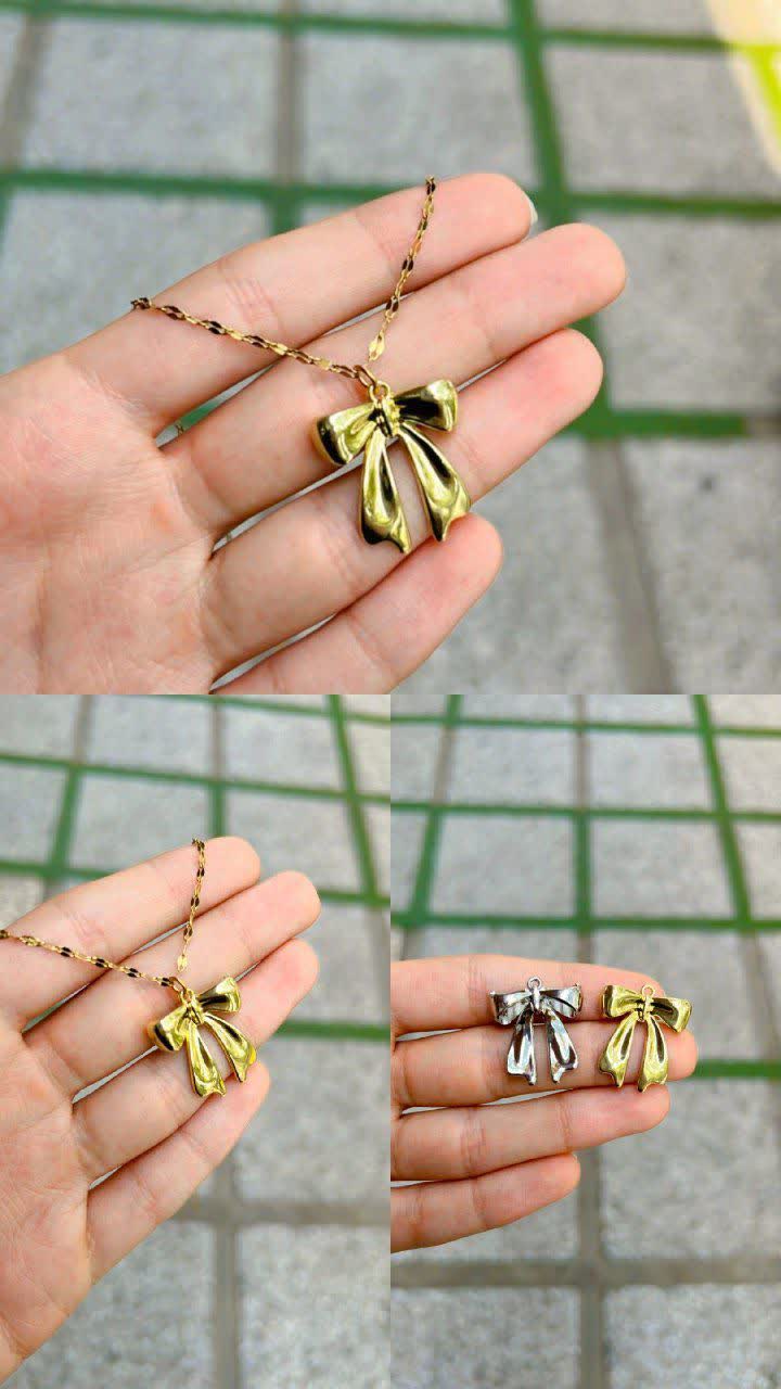 گردنبند پاپیون پینترستی طلایی و نقره‌ای