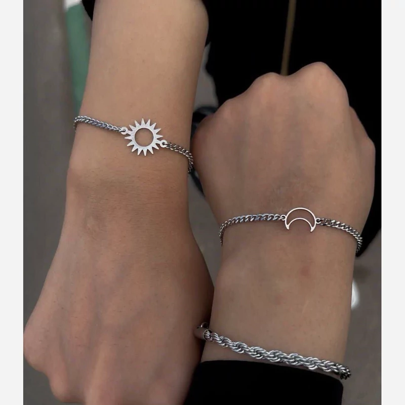 دستبند ست خورشید و ماه کاپلی – استیل، رنگ ثابت، مناسب برای زوجها و دوستان