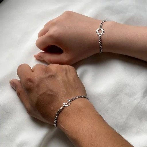 دستبند ست خورشید و ماه، نماد زیبای ارتباط عاطفی و هماهنگی بین دو فرد. این ست شامل دو دستبند با طراحی مینیمال و پلاکهای نمادین خورشید و ماه است که از استیل با کیفیت ساخته شده و کاملاً ضد حساسیت و رنگ ثابت میباشد. مناسب برای استفاده روزمره، حتی در تماس با آب و رطوبت.