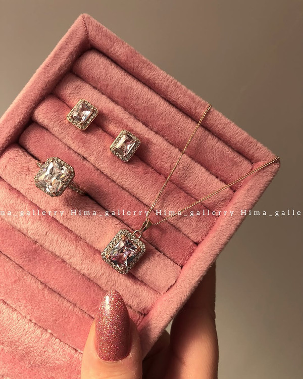 نیم ست ژوپینگ سولیتر جواهری رزگلد رنگ ثابت